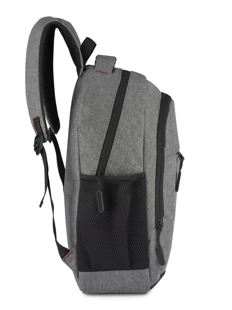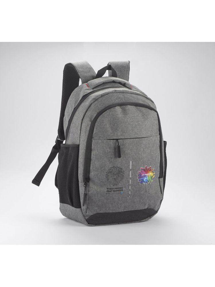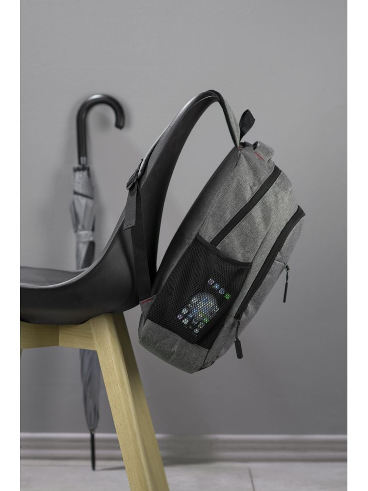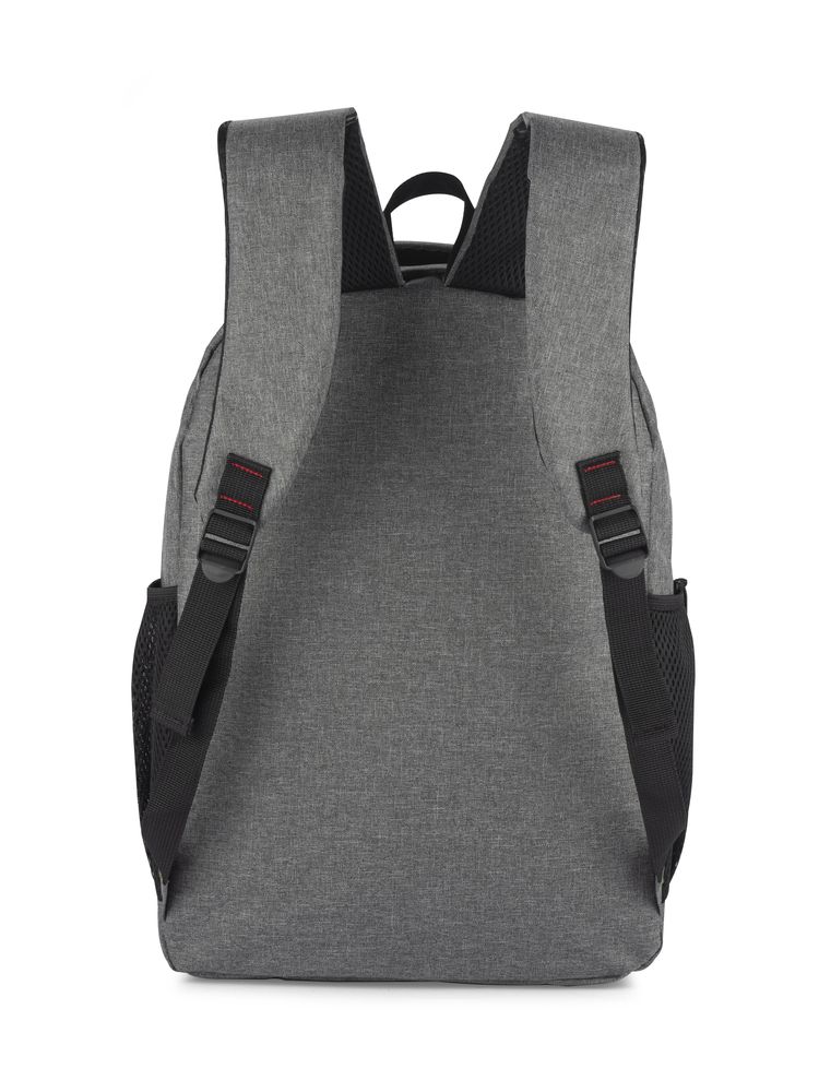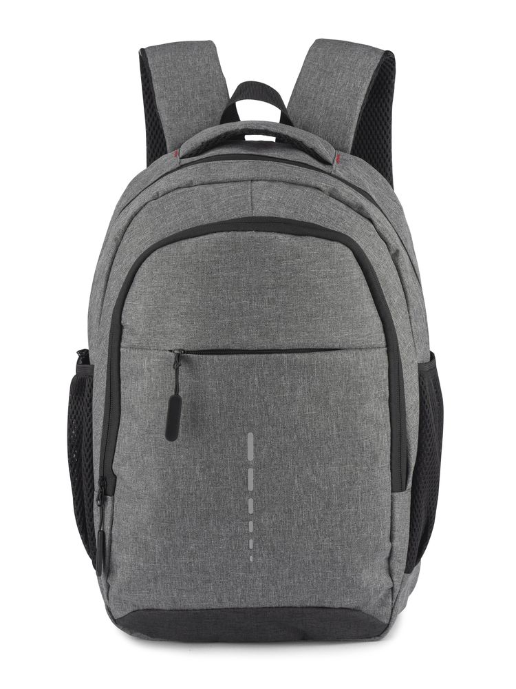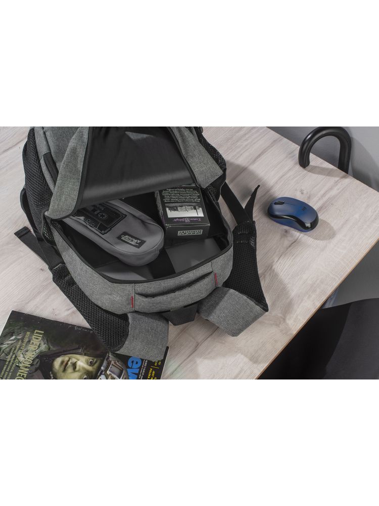 Plecak MARSH wykonany z mocnego poliestru 600D posiada pojemną główną komorę z wąską przegrodą zapinaną paskiem z rzepem. Zmieści ona 15-calowy laptop. Z przodu mniejsza komora zapinana na zamek oraz spora kieszeń również zasuwana zamkiem. Po obu stronach znajdują się siateczkowe kieszenie na napój. Usztywniane plecy i szelki wykończone miękką siateczką poprawią komfort użytkowania. U góry wygodna i szeroka rączka do chwycenia. Wewnątrz czarna podszewka.