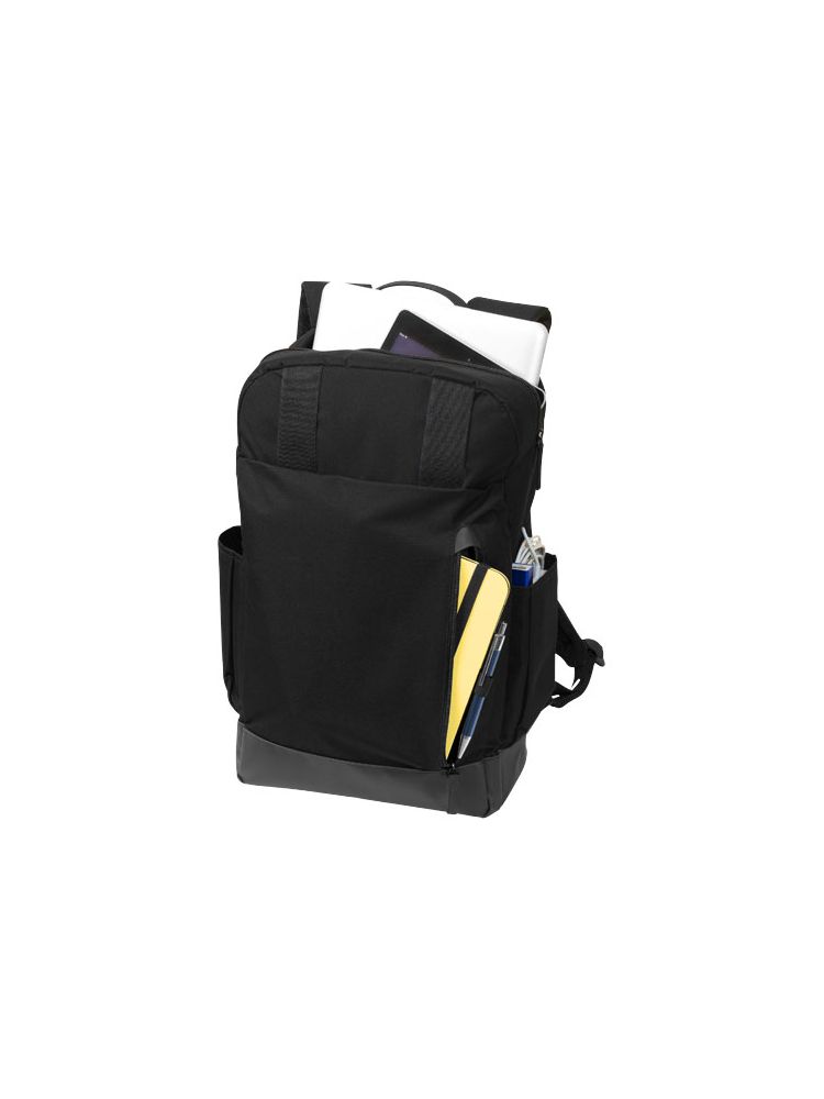 Plecak na komputer 15.6” z miejscem na tablet i kieszenią z siatki na akcesoria. Posiada klapę szybkiego dostępu, boczne kieszenie na butelki, organizer na długopisy, wizytówki, pendrivy na froncie.