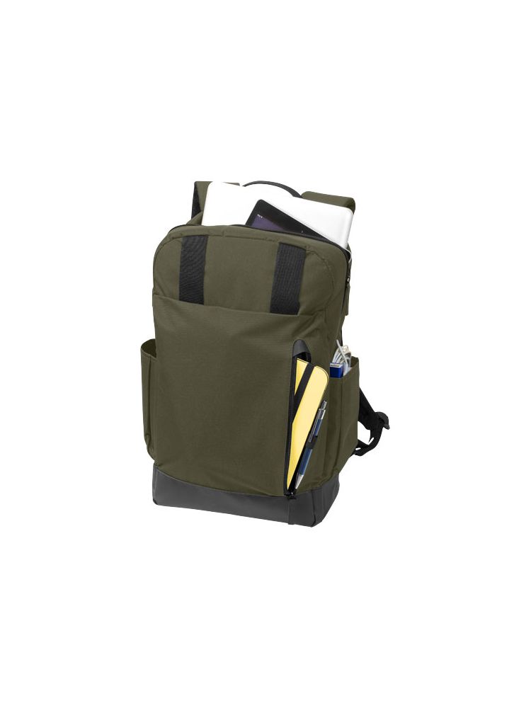Plecak na komputer 15.6” z miejscem na tablet i kieszenią z siatki na akcesoria. Posiada klapę szybkiego dostępu, boczne kieszenie na butelki, organizer na długopisy, wizytówki, pendrivy na froncie.