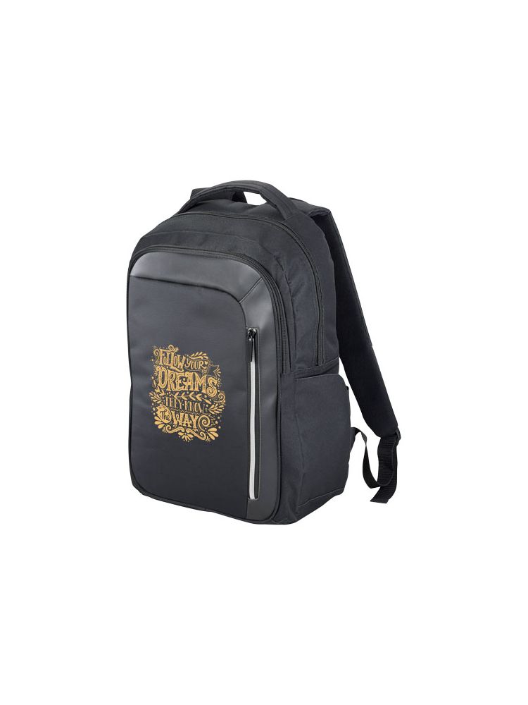 Plecak na laptop 15” z kieszenią na przodzie zawierającą miejsce na klucze, oraz kieszonką z ochroną RFID na karty kredytowe. Główny przedział zapinany na zamek pomieści laptop 15” i dodatkowo tablet w oddzielnej wyściełanej kieszeni. Zamek na froncie umożliwia szybki dostęp do przedniej kieszeni. Dwie dodatkowe kieszenie boczne. Wyściełane, regulowane szelki dają komfort użytkowania i możliwość zamocowania na nich innych przedmiotów. Posiada rączkę do przenoszenia oraz uchwyt umożliwiający założenie plecaka na walizkę. Ze względu na rodzaj barwników tkanin, splotów i nadruków mogą występować niewielkie różnice w kolorze rzeczywistego produktu.