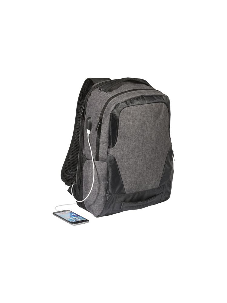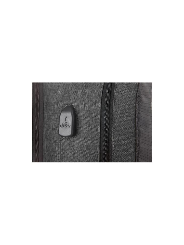 Elegancki plecak na laptop 17” z portem USB i przewodem. Wyposażony w zabezpieczenie RFID w bocznej kieszeni i dodatkowe kieszenie zapinane na zamek. Wyściełane uchwyty z góry i z przodu oraz szelki sprawiają, że wygodnie się go nosi. Ze względu na rodzaj barwników tkanin, splotów i nadruków mogą występować niewielkie różnice w kolorze rzeczywistego produktu.