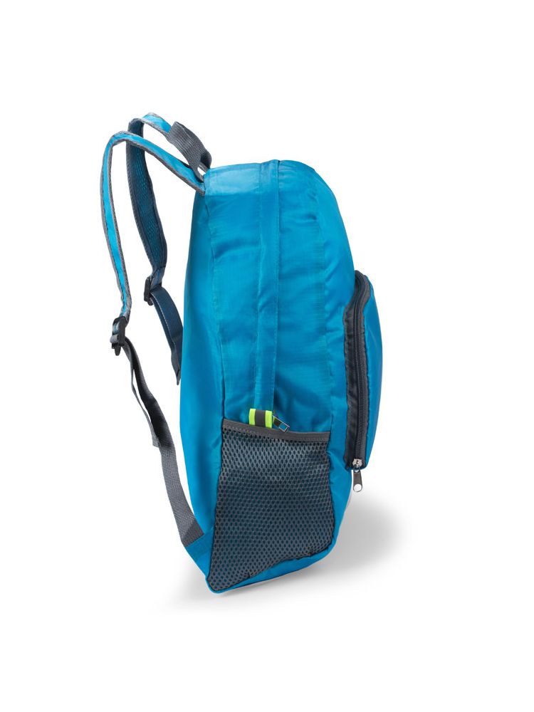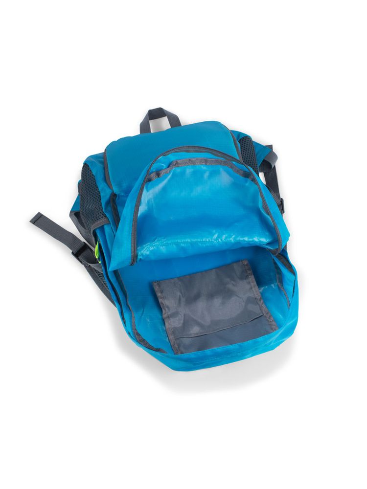 Funkcjonalny plecak, który można złożyć do niewielkich rozmiarów. Posiada jedną wewnętrzną kieszeń oraz trzy zewnętrzne – jedną zapinaną na zamek oraz dwie siateczkowe. Plecak wykonany z poliestru.