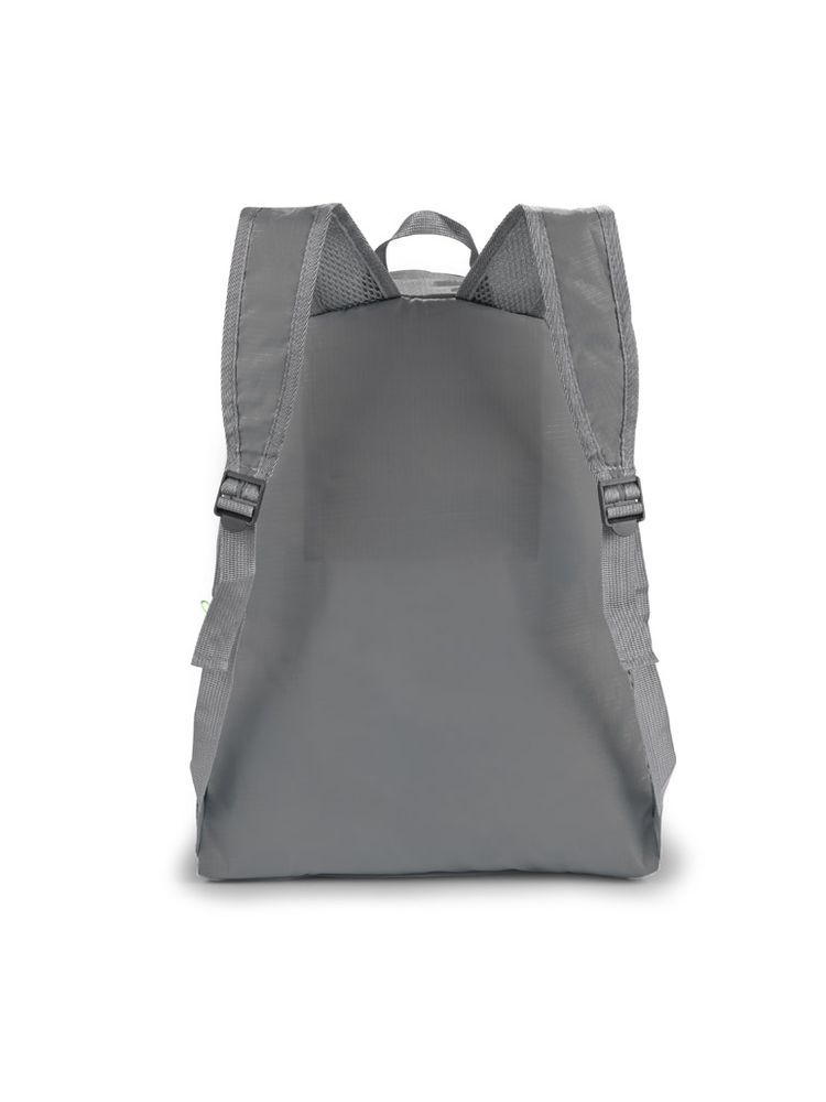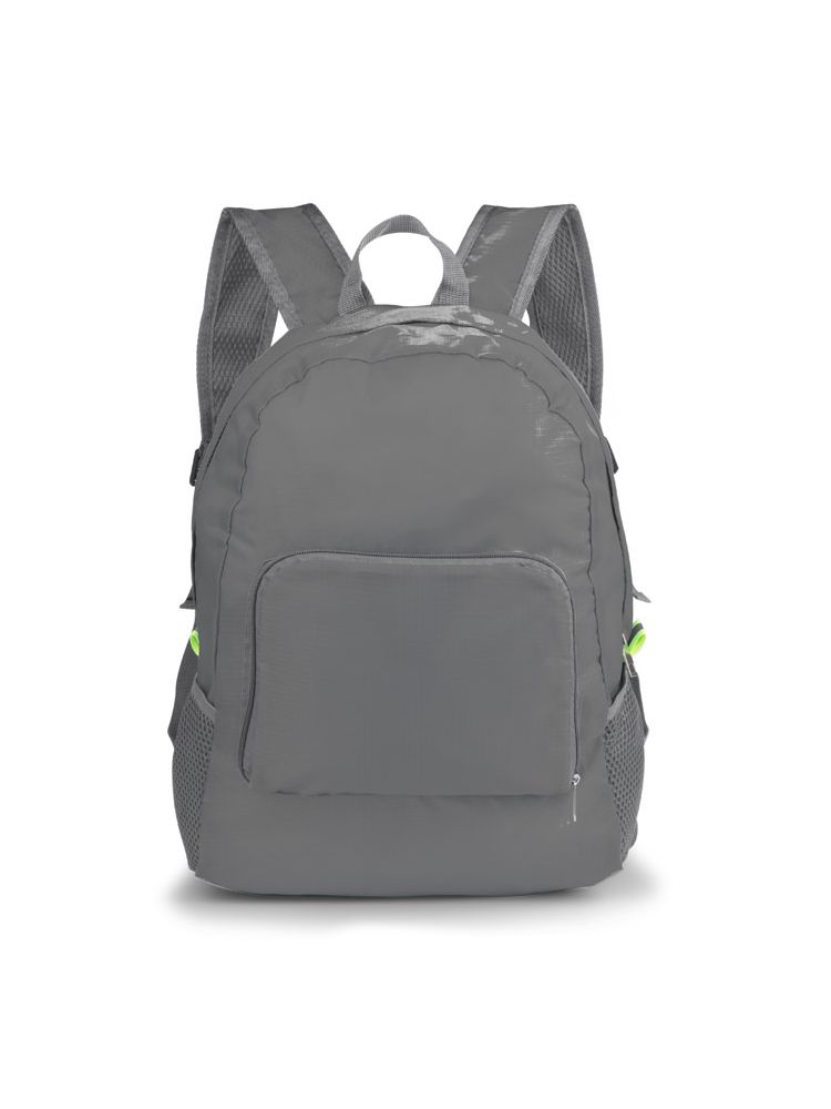 Funkcjonalny plecak, który można złożyć do niewielkich rozmiarów. Posiada jedną wewnętrzną kieszeń oraz trzy zewnętrzne – jedną zapinaną na zamek oraz dwie siateczkowe. Plecak wykonany z poliestru.