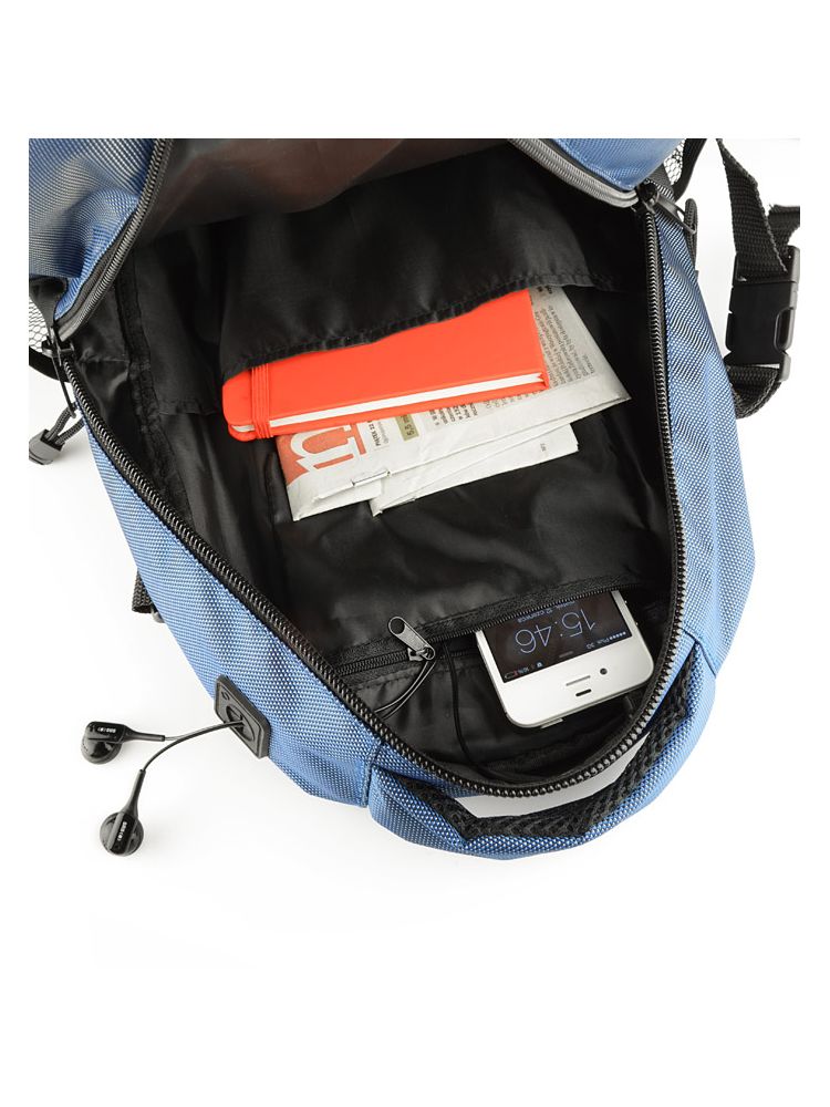Profesjonalny plecak turystyczny wykonany z niezwykle mocnego poliestru 1680D wzmocnionego technologią RIP-STOP, która dodatkowo czyni materiał wyjątkowo odpornym na rozdarcia. Wzmocniona wodoodporność materiału pozwala na swobodne podróżowanie także przy niesprzyjającej pogodzie. Komora główna z kieszenią na plecach i małą kieszonką na zamek oraz z otworem na przewód słuchawkowy. 1 kieszeń przednia oraz 2 boczne kieszenie siateczkowe. Plecak ściągany paskami bocznymi, wyposażony w karabińczyk. Szelki z grubą gąbką, od spodu wykończone siateczką. Usztywniane plecy. Plecak łączy w sobie funkcjonalność, wygodę użytkowania oraz wysoką jakość wykonania. Znakowanie haftem jest możliwe, ale wyłącznie pod indywidualne zapytanie.