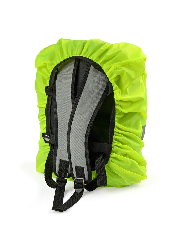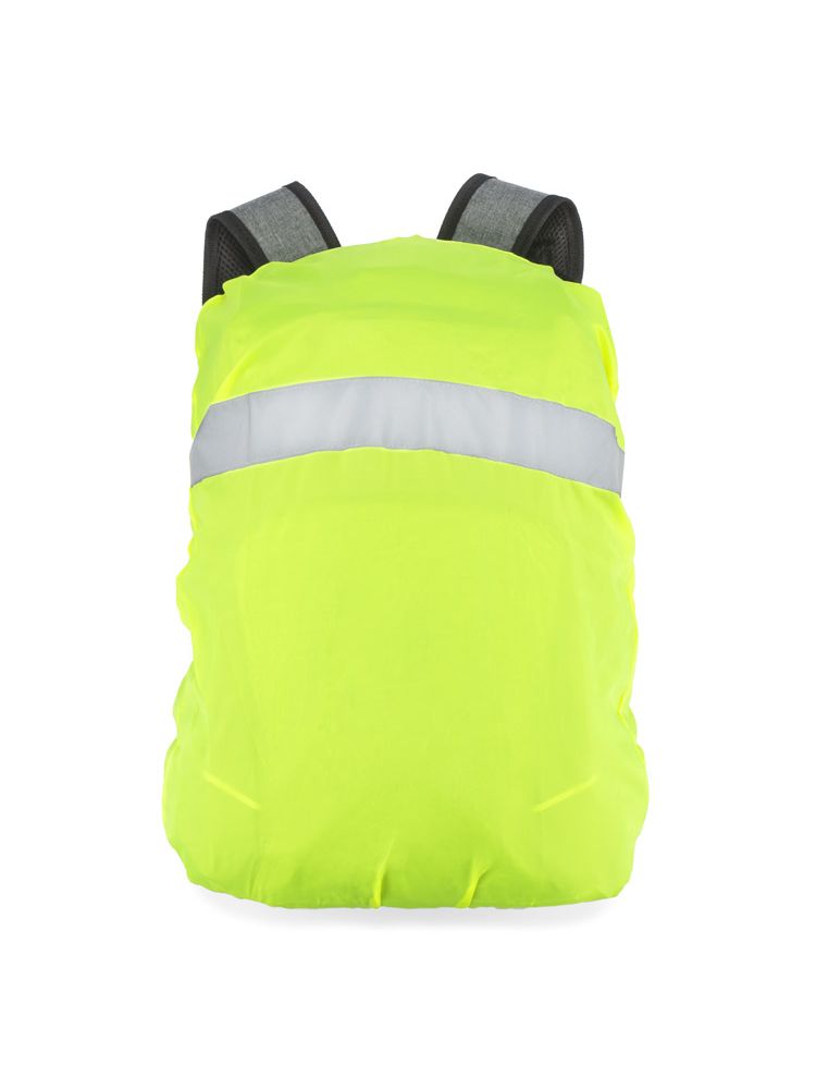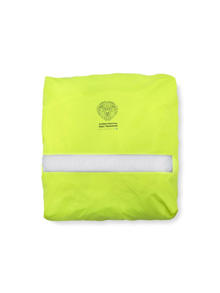 Wodoodporny pokrowiec na plecak ze srebrnym, odblaskowym paskiem. Posiada z tyłu dwa zapięcia, dzięki którym pokrowiec nie zsunie się z plecaka. Logo naniesiemy za pomocą sitodruku.
