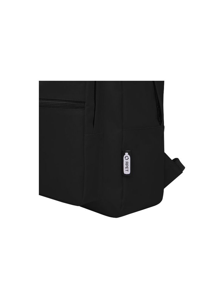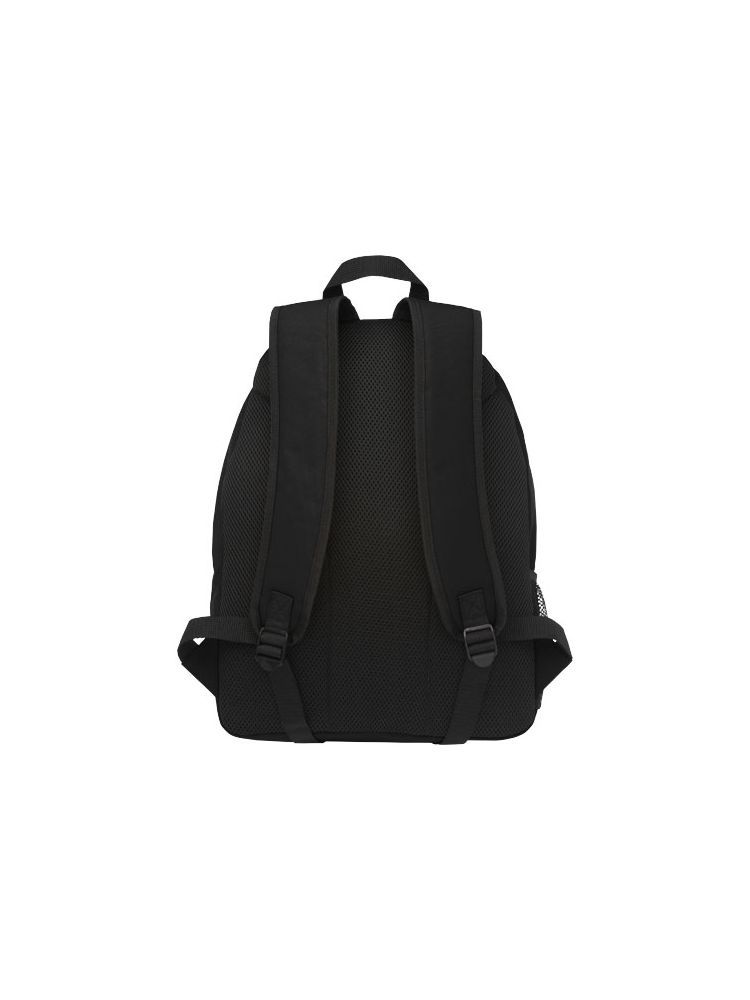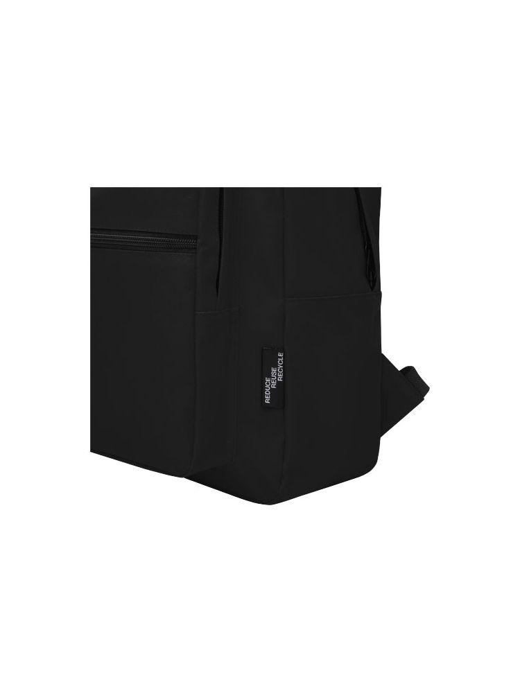 Wytrzymały plecak wykonany w 100% z plastiku poddanego recyclingowi, co przyczynia się do zmniejszenia ilości odpadów plastikowych. Ma regulowane paski na ramię, 2 przegrody i przednią kieszeń zamykane na zamek błyskawiczny. Do produkcji tej torby przetworzono około 15 butelek.