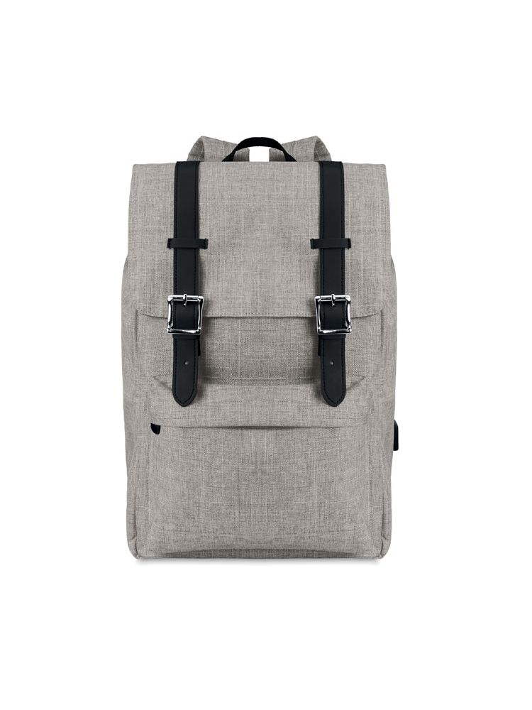 Plecak na laptop z poliestru 600D z wyściełanymi paskami na ramiona, główna komora na laptop 15-calowy, kabel USB do ładowania. Zawiera zapięcie na zatrzask magnetyczny i jedną przednią kieszeń zapinaną na suwak.