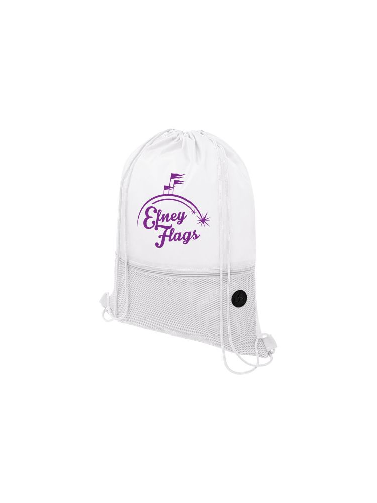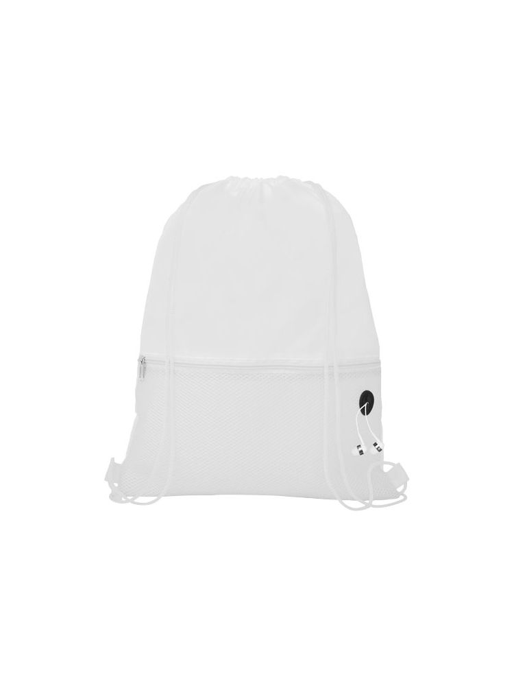 Plecak ściągany sznurkiem z główną przegrodą ściąganą sznurkiem w pasującym kolorze. Posiada jedną przednią kieszeń z siateczki zasuwaną na zamek oraz port na słuchawki. Wytrzymałość do 5 kg.