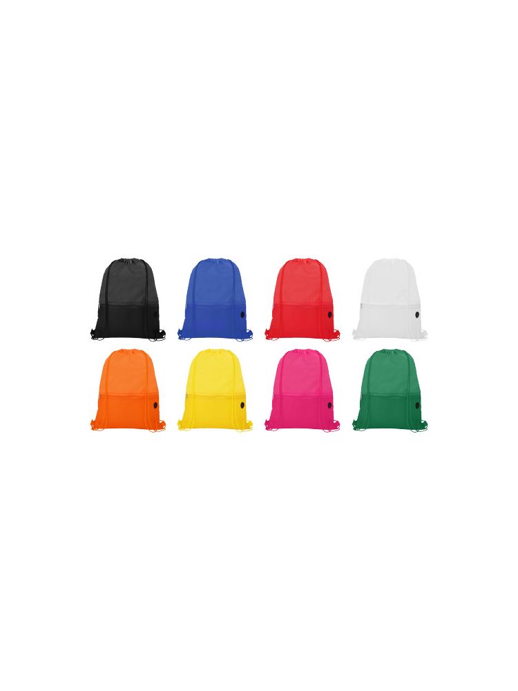 Plecak ściągany sznurkiem z główną przegrodą ściąganą sznurkiem w pasującym kolorze. Posiada jedną przednią kieszeń z siateczki zasuwaną na zamek oraz port na słuchawki. Wytrzymałość do 5 kg.