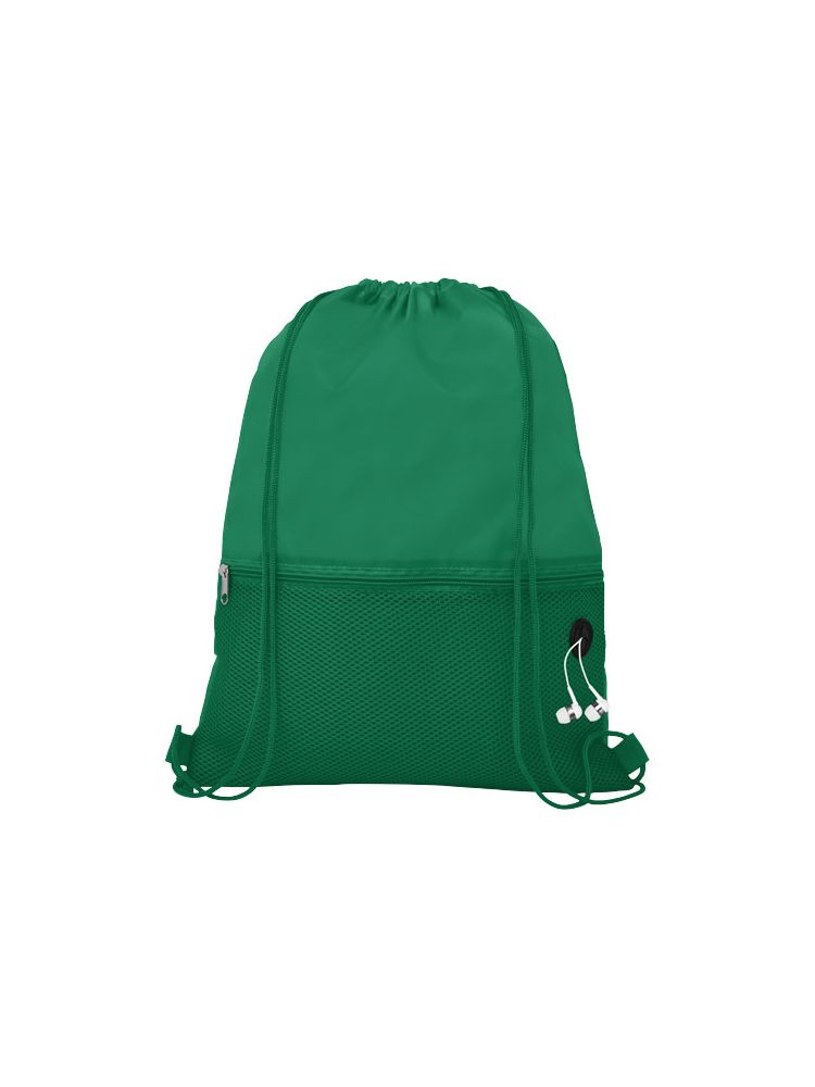 Plecak ściągany sznurkiem z główną przegrodą ściąganą sznurkiem w pasującym kolorze. Posiada jedną przednią kieszeń z siateczki zasuwaną na zamek oraz port na słuchawki. Wytrzymałość do 5 kg.