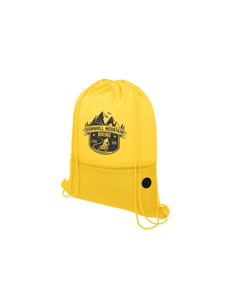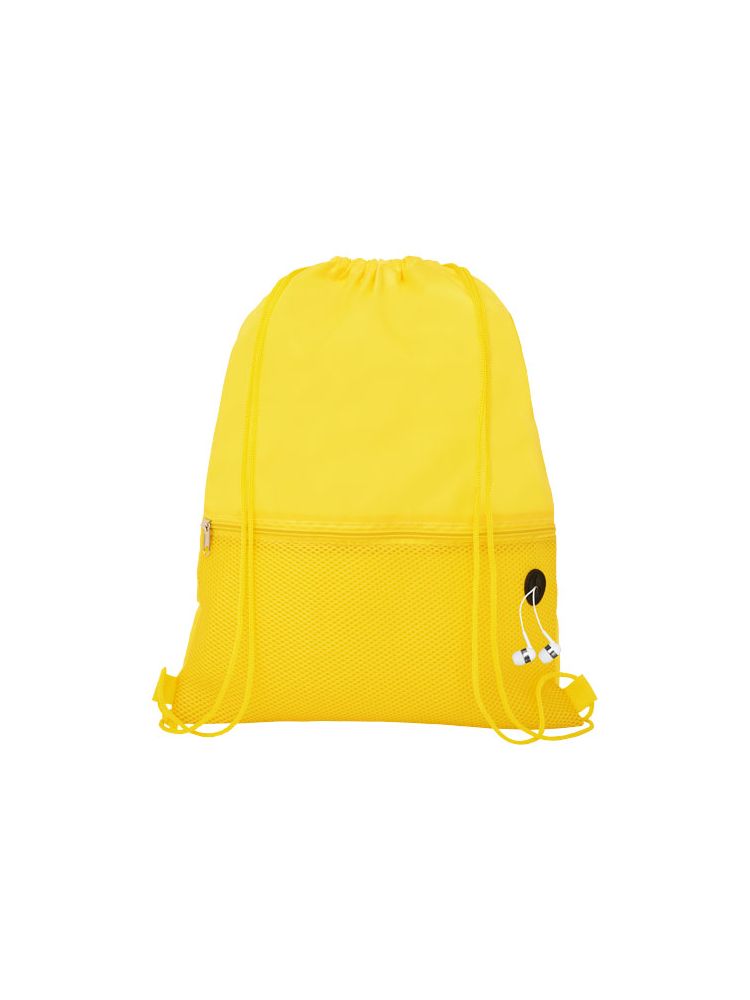Plecak ściągany sznurkiem z główną przegrodą ściąganą sznurkiem w pasującym kolorze. Posiada jedną przednią kieszeń z siateczki zasuwaną na zamek oraz port na słuchawki. Wytrzymałość do 5 kg.