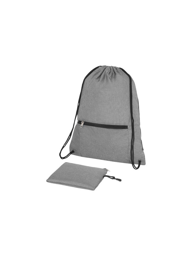 Plecak ściągany sznurkiem z dużą komorą główną z zamknięciem na sznurek w kolorze czarnym. W kolorze melanżowym. Posiada zapinaną na zamek przednią kieszeń, do której można złożyć plecak. Wytrzymałość do 5 kg. Ze względu na rodzaj barwników tkanin, splotów i nadruków mogą występować niewielkie różnice w kolorze rzeczywistego produktu.