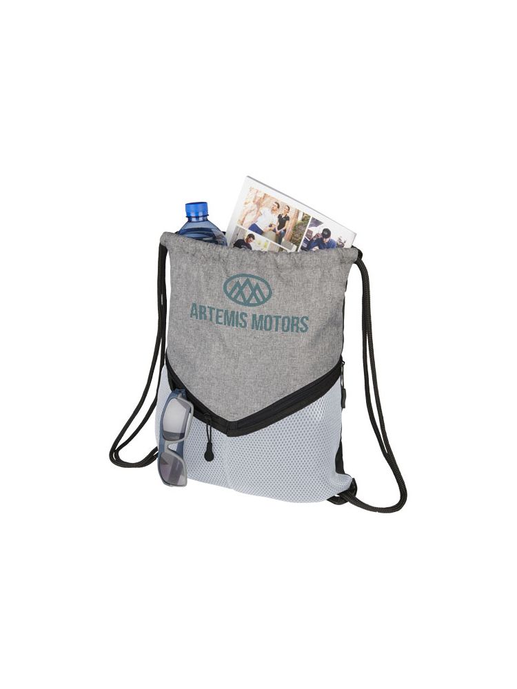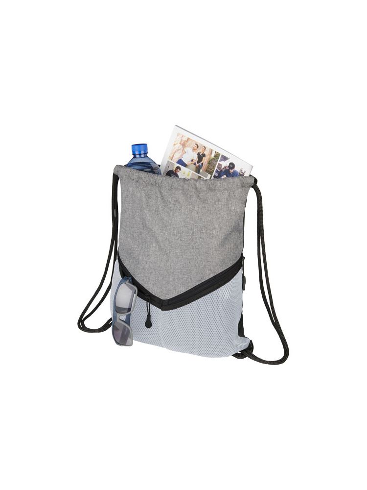 Plecak ze sznurkiem Voyager nie jest zwykłym plecakiem ze sznurkiem. Trwały szary wierzch z poliestru 600D i dwie zapinane na zamek kieszenie z siatki na spodzie nadają temu plecakowi bardzo sportowy wygląd. Plecak Voyager jest idealny do rozdawania podczas halowych lub zewnętrznych imprez sportowych i posiada kilka opcji nadruku logo. Plecak ma konstrukcję ze sznurkiem ściągającym, która umożliwia łatwe noszenie na jednym lub obu ramionach.