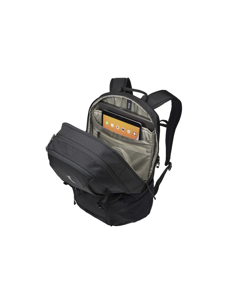 Wszechstronny plecak inspirowany stylem outdoorowym, wyposażony w wiele rozwiązań ułatwiających przechowywanie w podróży. Posiada podwyższone, dedykowane kieszenie na 16-calowy laptop MacBook® lub 15,6-calowy komputer PC oraz tablet 10,5-calowy, a także panel służący do organizacji mniejszych akcesoriów. Komora dodatkowa nadaje się do przechowywania ubrań, akcesoriów lub innych przedmiotów osobistych. Plecak ma pasek piersiowy, wyściełany tylny panel z kanałem przepływu powietrza i boczne paski kompresyjne, aby zrównoważyć obciążenie, dzięki czemu jest wygodniejszy w noszeniu. Wykonane z zatwierdzonego przez Bluesign® nylonu 400D z zamkami YKK.