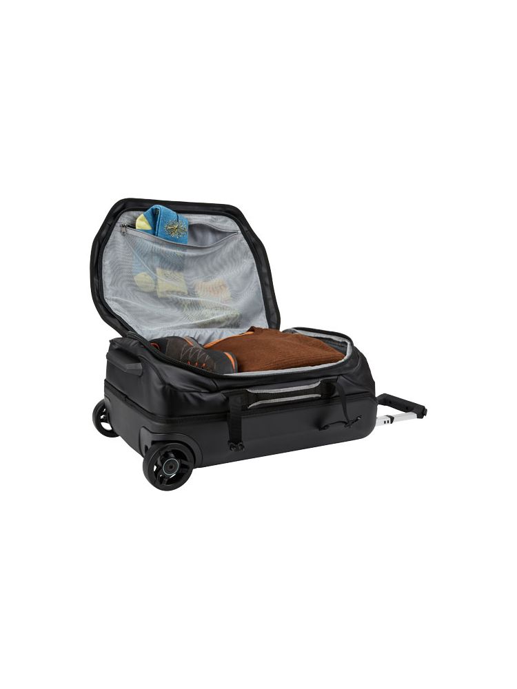Odporny na warunki atmosferyczne bagaż podręczny przeznaczony na krótkie wycieczki i weekendowe wyjazdy. Wytrzymała tkanina brezentowa chroni zawartość przed czynnikami atmosferycznymi. Aby zachować zgodność z przepisami dotyczącymi bagażu podręcznego, należy go zapakować tylko do wewnętrznego znacznika maksymalnego wypełnienia. W przypadku podróżowania bez wymogów dotyczących rozmiaru torby do dyspozycji jest dodatkowe 5 cm przestrzeni do pakowania.