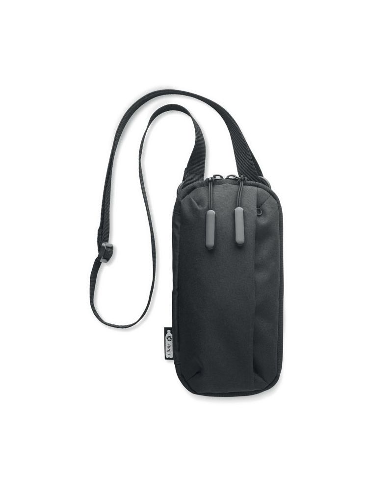 Uniwersalna torba na smartfona z poliestru 300D RPET z regulowanym paskiem. Przednia i boczna kieszeń na zamek błyskawiczny. Główna komora posiada kilka kieszeni.