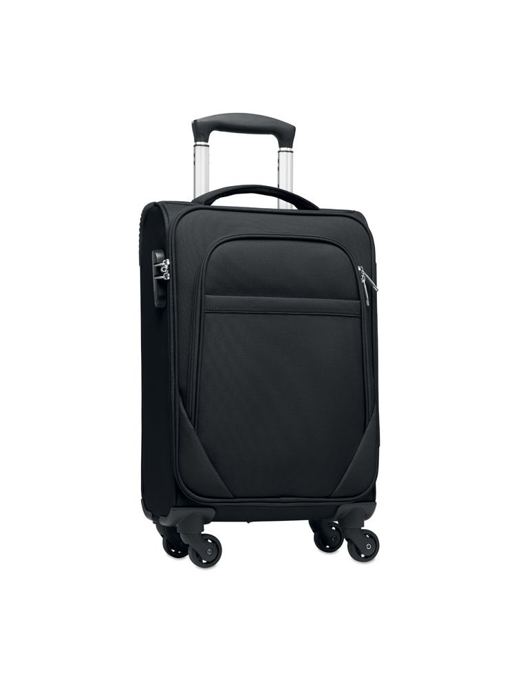 Kabinowa walizka na kółkach 600D RPET poliester, miękka. Zewnętrzna komora na laptopa zapinana na zamek. Przednia kieszeń zapinana na zamek. Podwójna rama. 210D podszewka RPET i detale z PU.