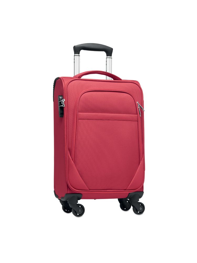 Kabinowa walizka na kółkach 600D RPET poliester, miękka. Zewnętrzna komora na laptopa zapinana na zamek. Przednia kieszeń zapinana na zamek. Podwójna rama. 210D podszewka RPET i detale z PU.