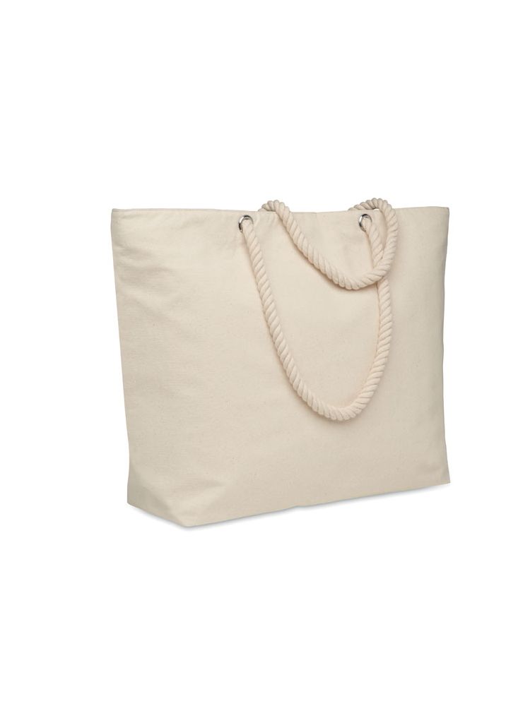 Zapinana na zamek chłodząca bawełniana torba plażowa z uchwytem sznurkowym. 220 gr/m². Izolacja z folii aluminiowej 2 mm.