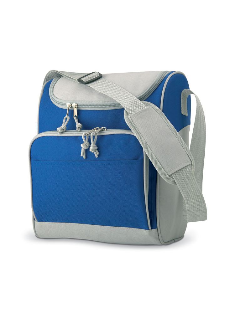 Torba izotermiczna z przednią kieszenią i dwoma suwakami. Materiał izolacyjny: Folia aluminiowa. Pojemność 13L.