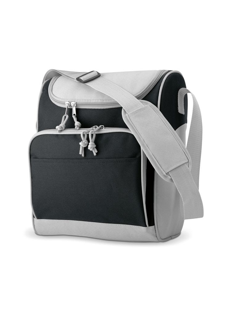 Torba izotermiczna z przednią kieszenią i dwoma suwakami. Materiał izolacyjny: Folia aluminiowa. Pojemność 13L.