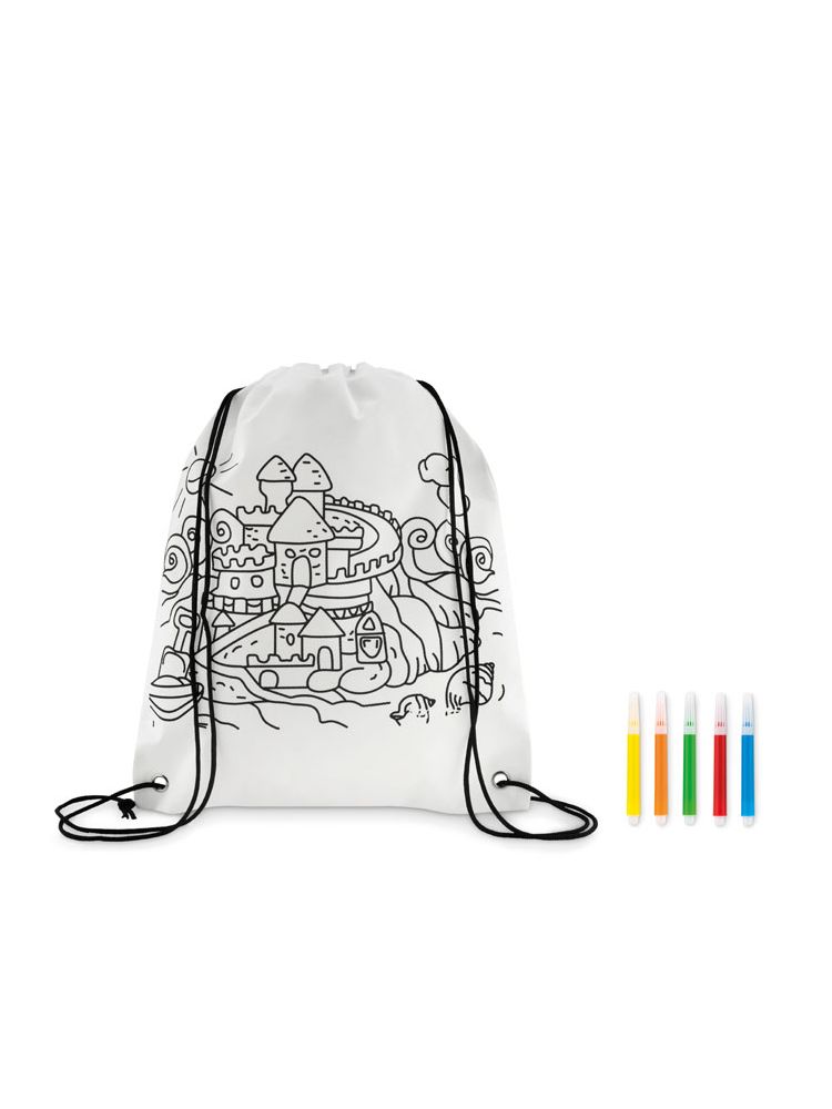 Worek ze sznurkiem do kolorowania, z 5 mazakami. Włóknina 80 gr/m².
