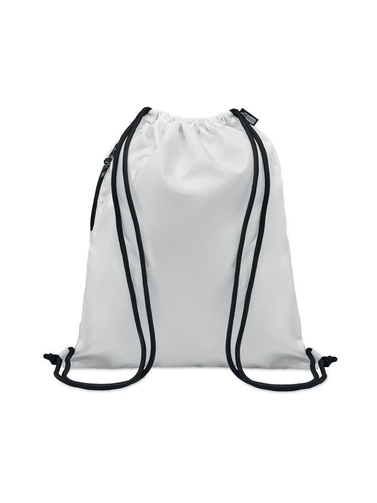 Duży worek ze sznurkiem ściągającym z poliestru 300D RPET z boczną kieszenią zewnętrzną zapinaną na zamek.