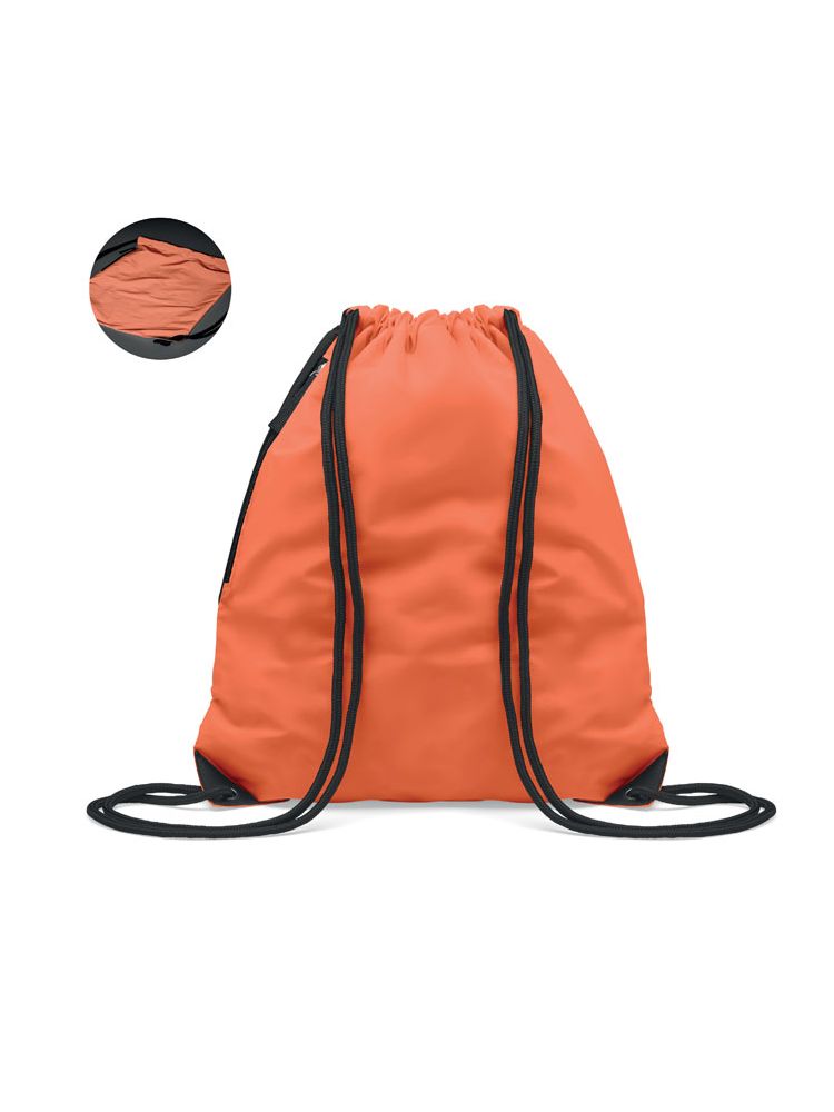 Worek ze sznurkiem wykonany z poliestru 190T pokrytego odblaskowymi granulkami. Z jednej strony zapinana na zamek kieszonka. Gruby sznurek.