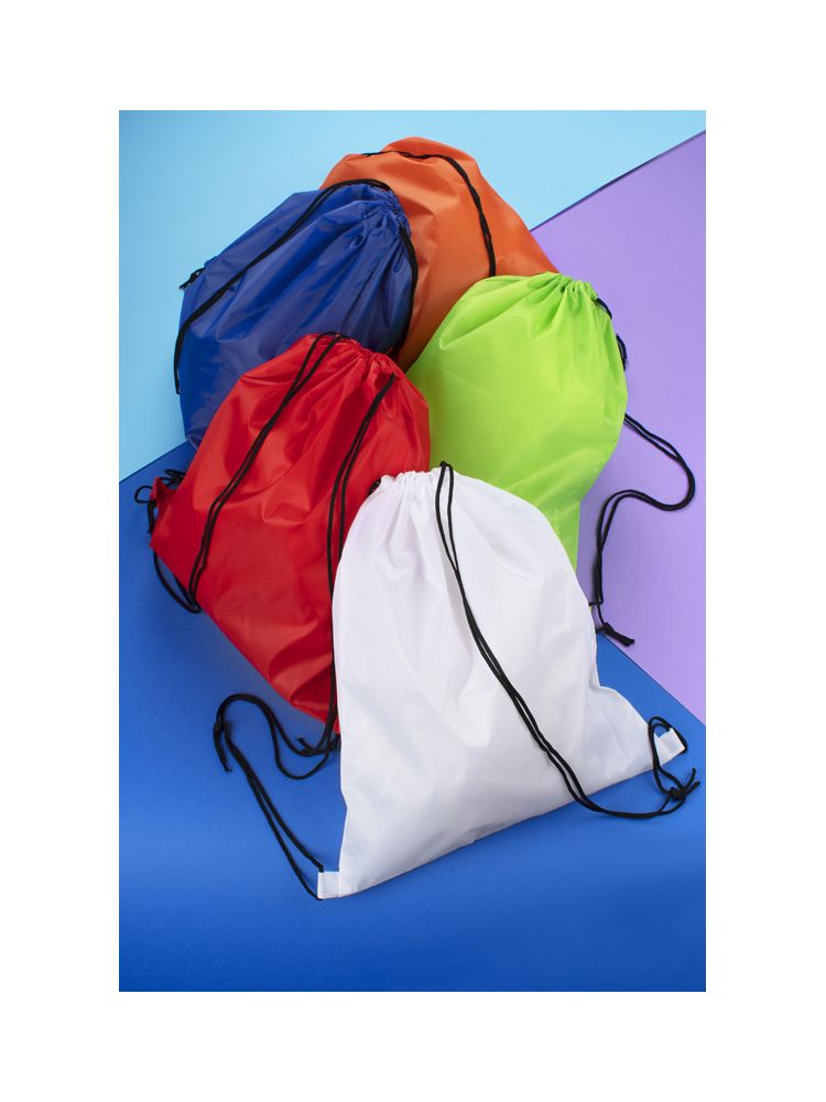 Wykonany z poliestru 210D użyteczny worek. Aby go zamknąć wystarczy pociągnąć z sznurki. Logo naniesiemy metodą sitodruku. Maksymalna wytrzymałość worka ok 2 kg.